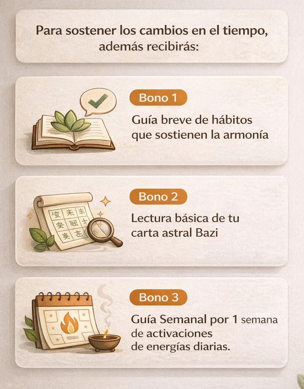 Trabajo con un proceso claro de Feng Shui Clásico aplicado que analiza tu espacio, define prioridades y te guía paso a paso para desbloquear lo que hoy no está fluyendo.